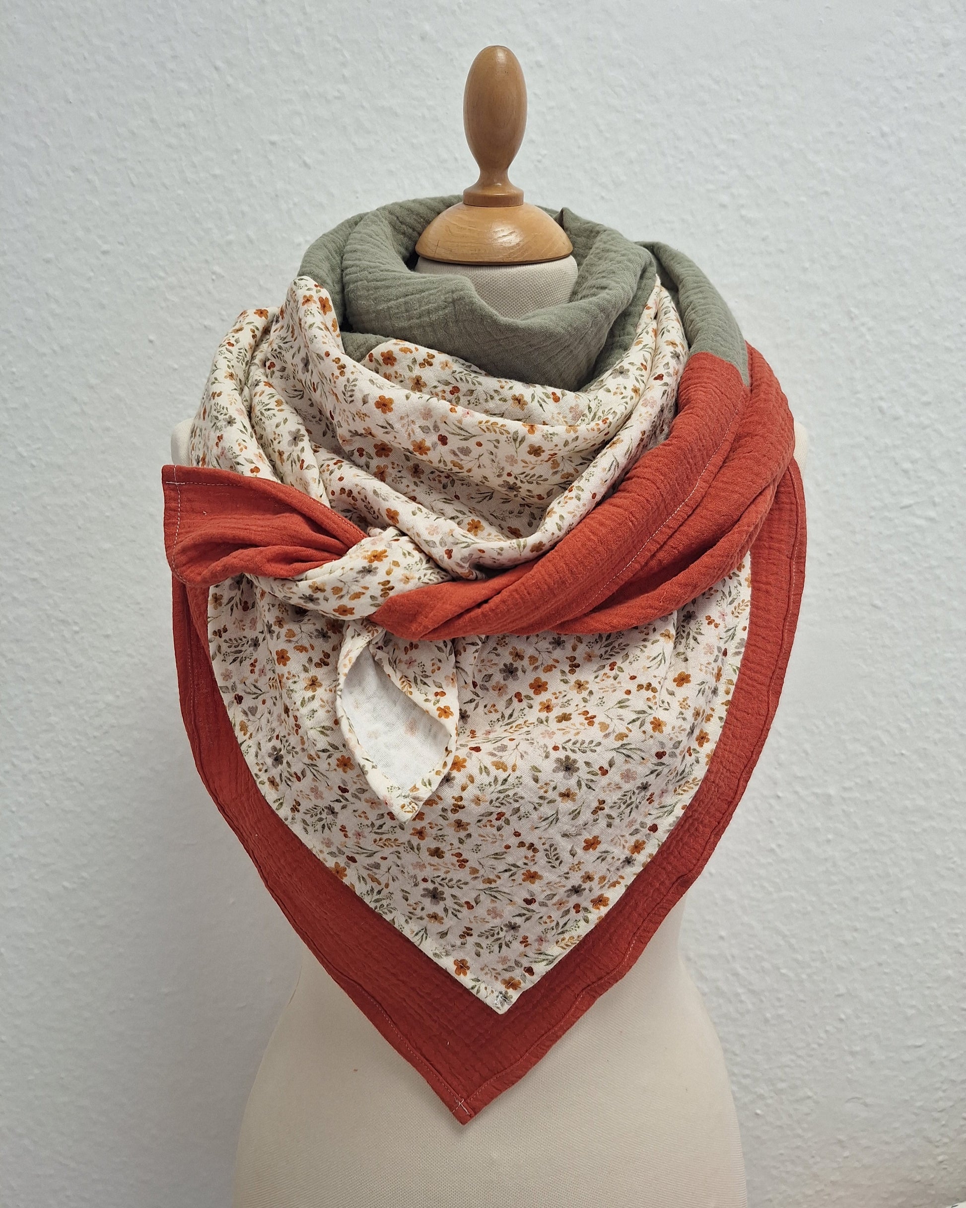 Musselin olive, orange, Blümchen